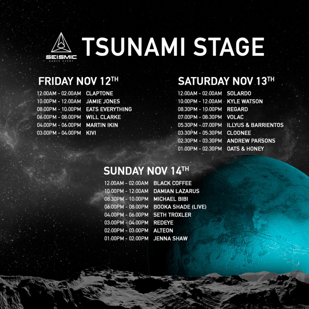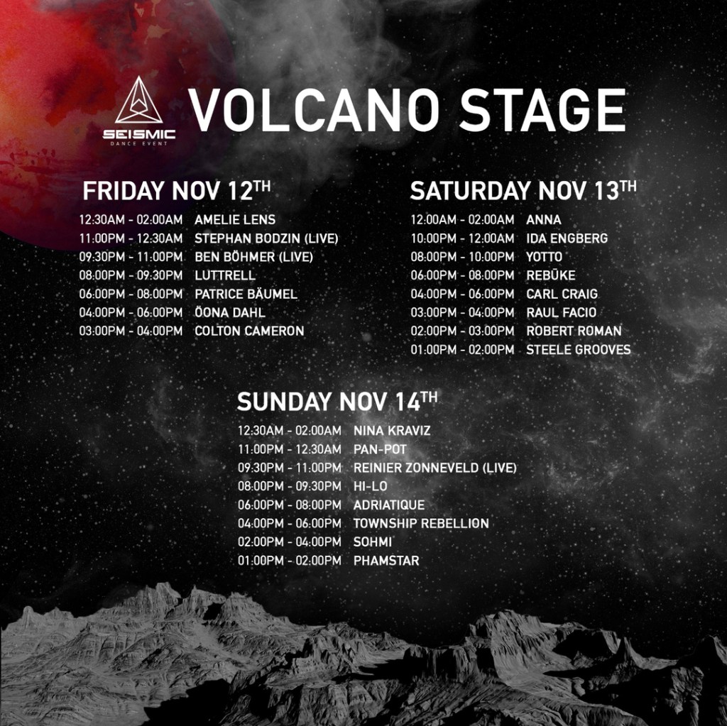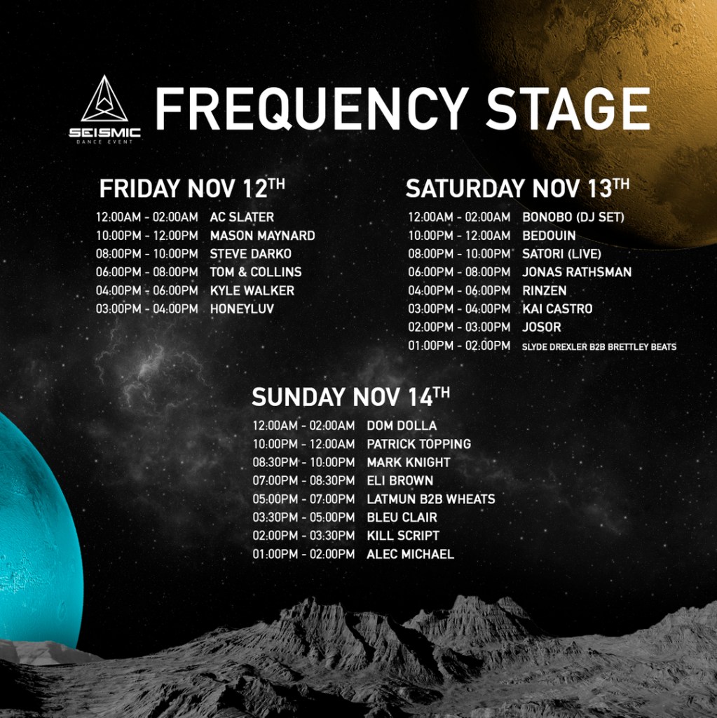 See you all at Seismic this weekend for some wholesome house and techno vibes! Stage lineups and set times can be found below. Don’t forget to purchase tickets!