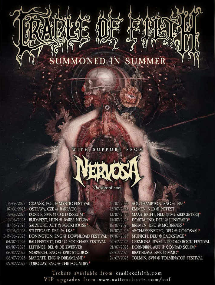 On May 23, 2025, Cradle of Filth delivered a mesmerizing performance at Sacramento’s Ace of Spades to end their Deliciously Live tour. The band showcased their latest album, The “Screaming of the Valkyries”, alongside classic fan favorites, reaffirming their status in the extreme metal scene.