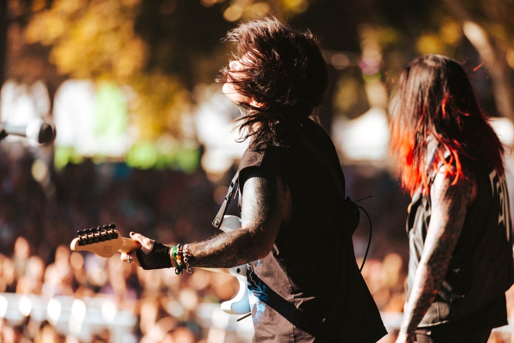 Fresh off a tour with Corey Taylor, Luna Aura brought an energetic stage presence that the audience loved and they vibed along with her. Between songs she asked them, “Are we friends yet? Do you want to be more than friends? Me too!” Her fun and bright vocals and bouncing guitar riffs made for a very catchy performance.