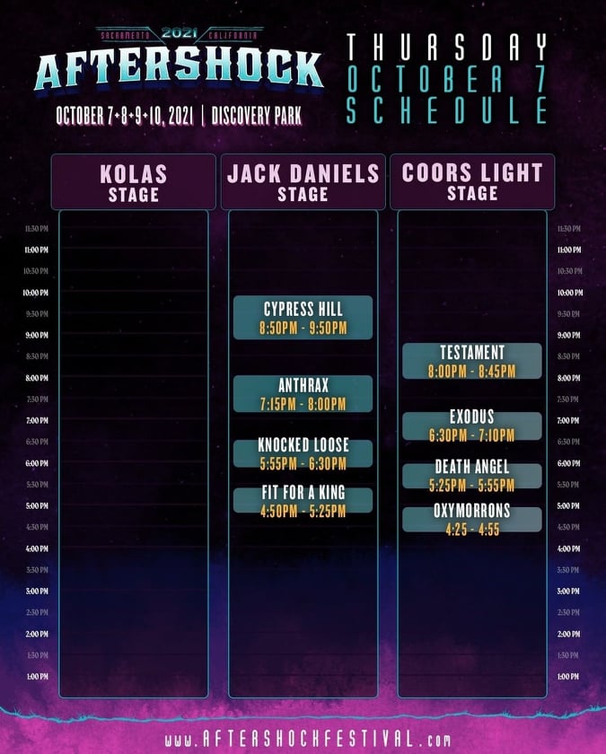 In 2019, Aftershock celebrated its biggest year in the history of the California rock festival with 97,500 in attendance during the sold-out three-day event. The sold-out 2020 festival was rescheduled to 2021 due to COVID-19 guidelines.