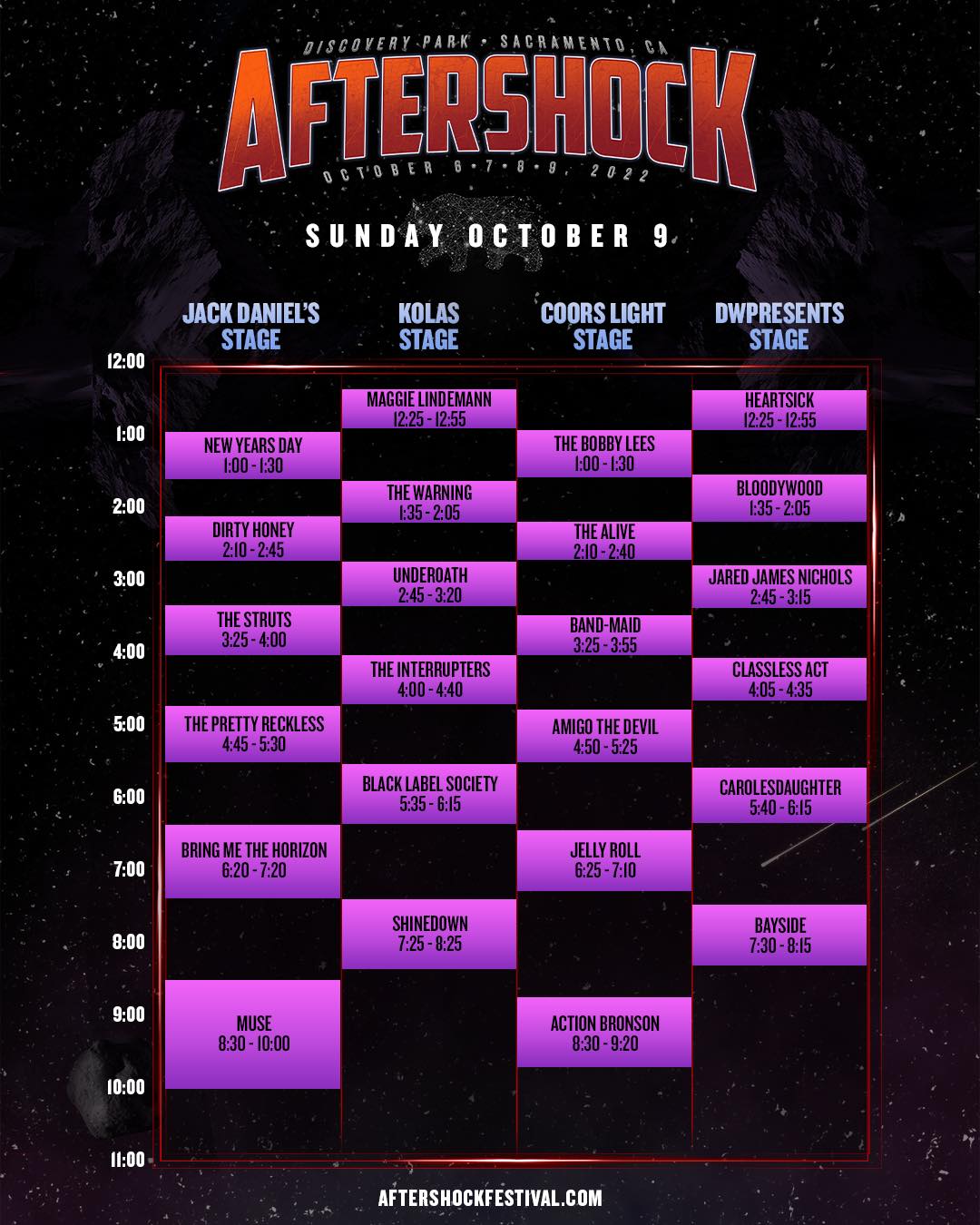Aftershock performance times are now announced. Find the full schedule on the official Aftershock mobile app.