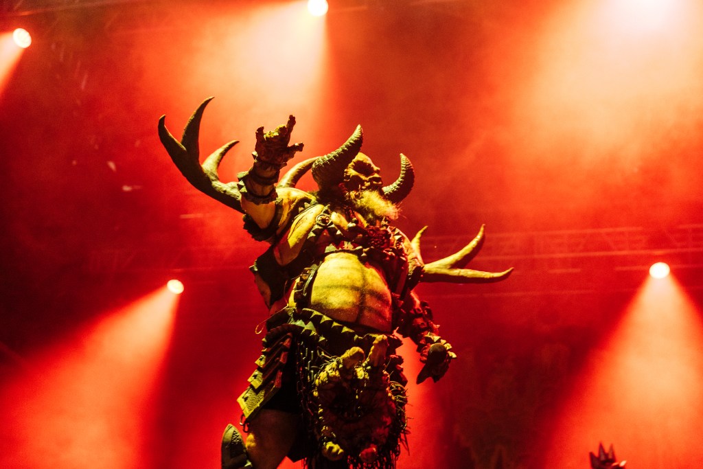 GWAR cut an impressive silhouette as they joined the DWP stage. Entirely not from this world, their figures towered above us all as their voices and instrumentals clapped like thunder across the park. Their fans pressed in close to be bathed in fake blood as the theatrics commenced, and screamed with glee when they entered the famed splash zone.