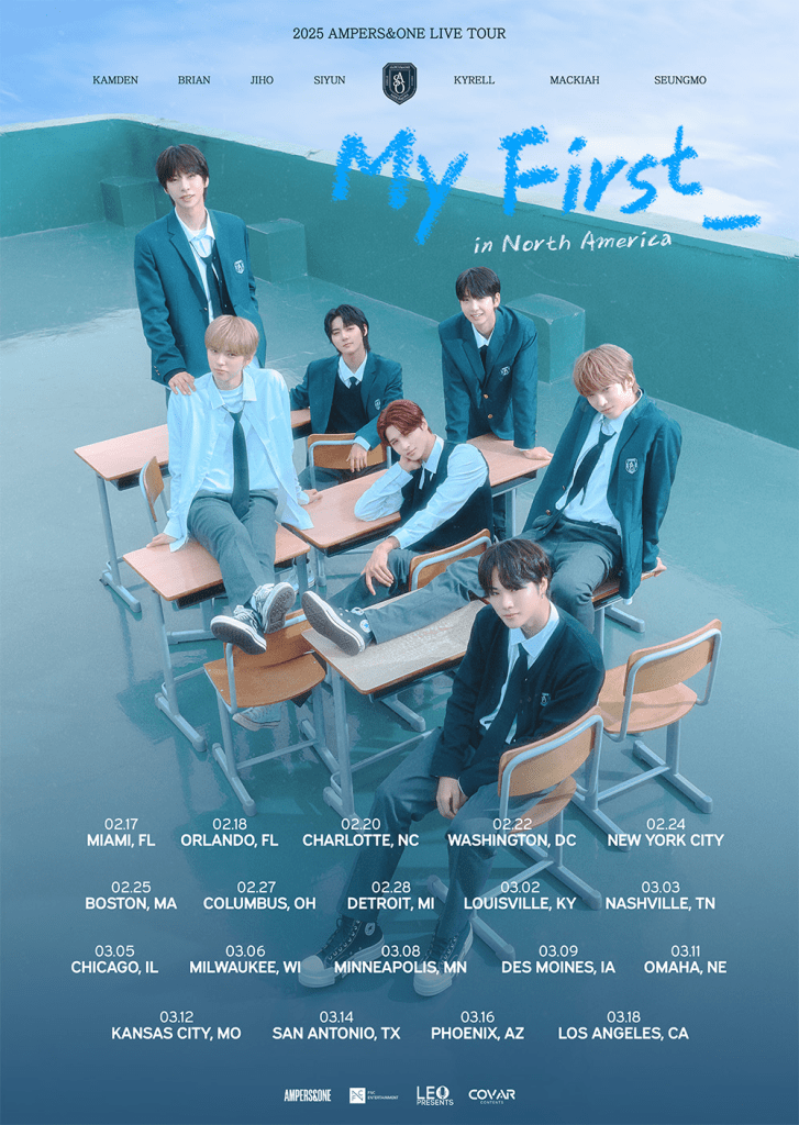 The 2025 Live Tour ‘My First _’ in North America begins on Feb. 17 in Miami and covers 19 cities, concluding in Los Angeles on March 18. With stops in major hubs like New York and Chicago, as well as unique venues in Omaha and Des Moines, AMPERS&ONE demonstrates a commitment to reaching a broad audience.