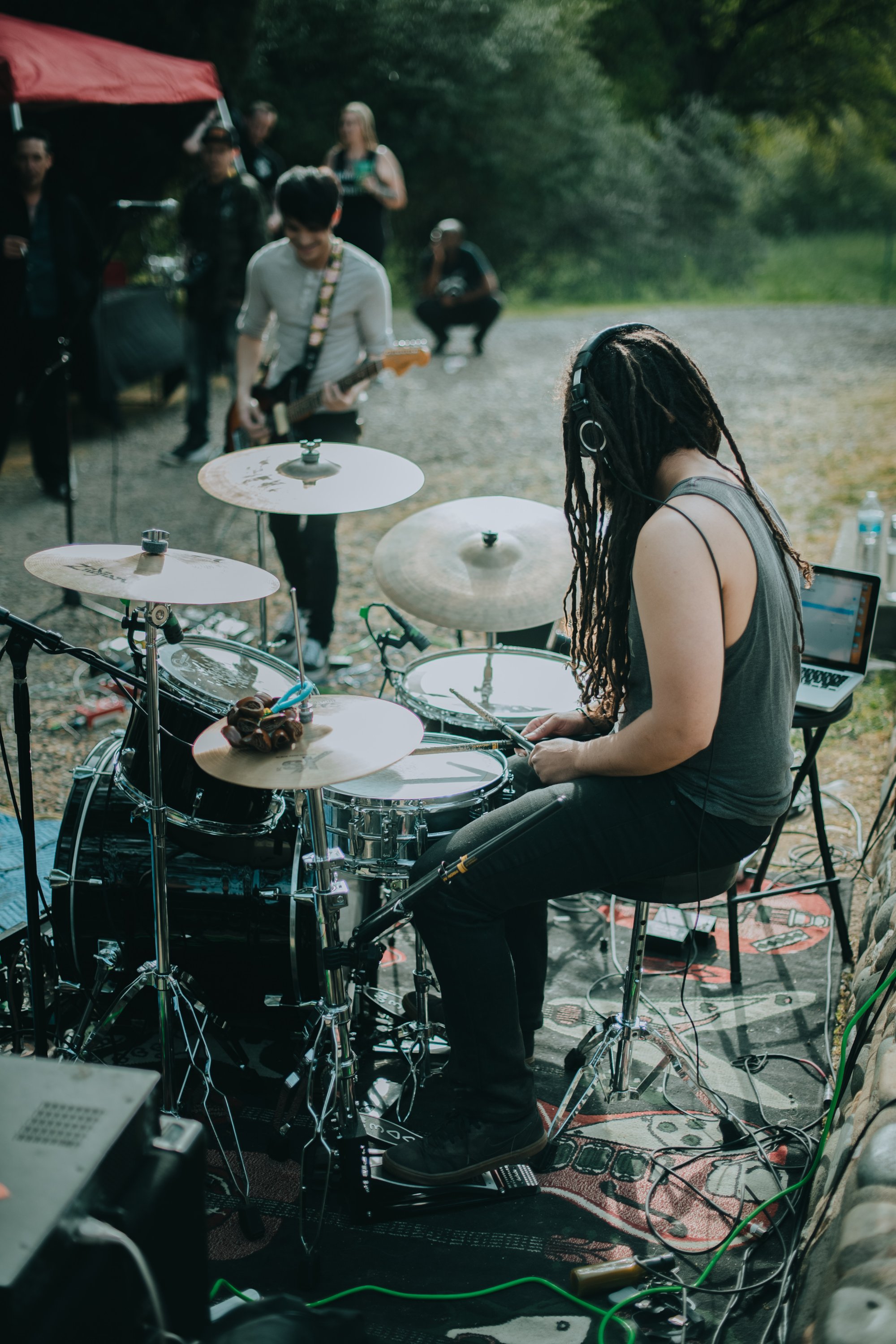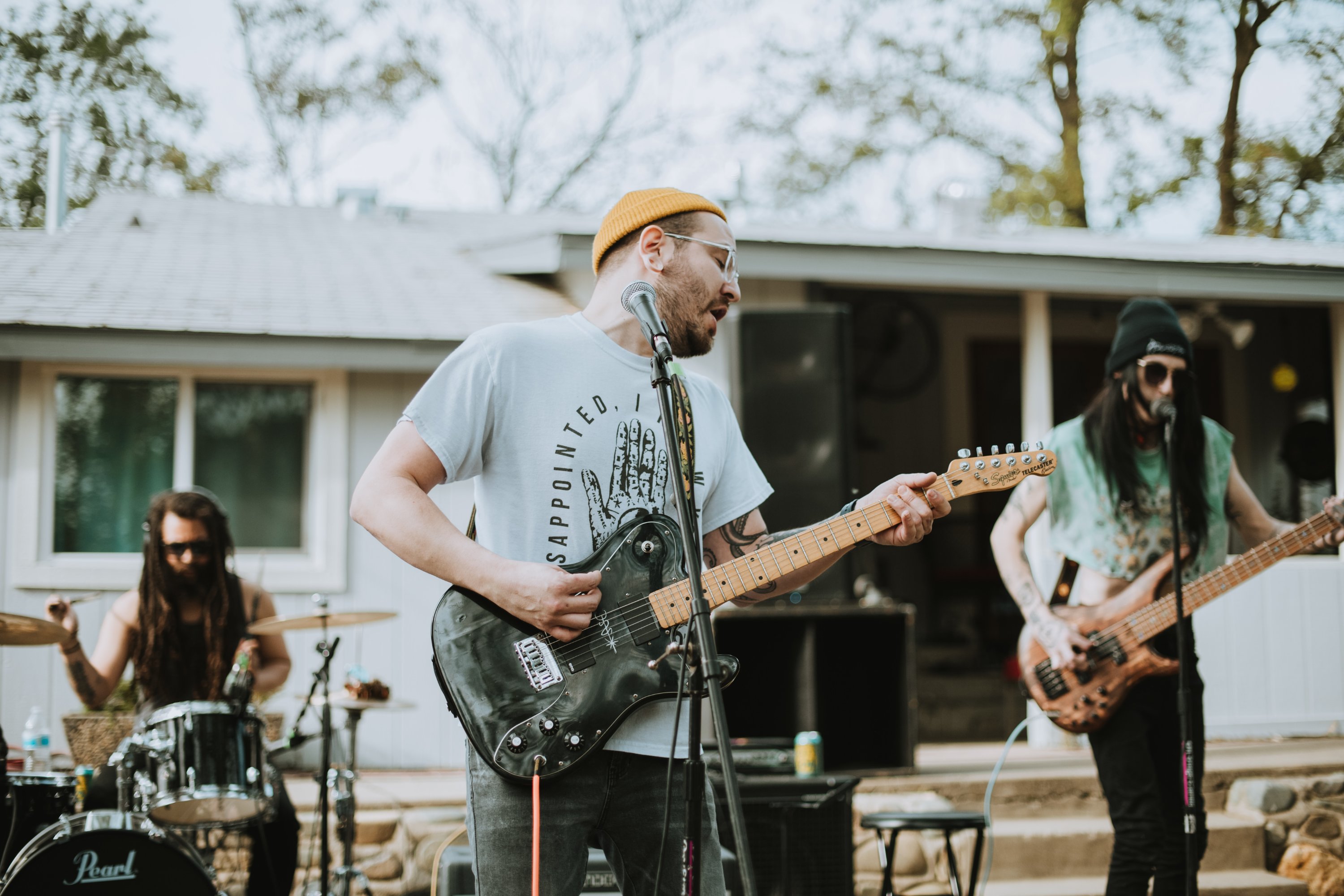 As an independently produced and curated group of artists, Aquageist is just rising on the radar in the music scene after performing their second show ever last Saturday, April 3rd. With the stage in a shaded backyard in Fair Oaks, the landscape was filled with friends, new fans, and fresh BBQ and ice cold drinks. The performance embodied a nostalgia and a new beginning as shows begin their return from the previous year, drained from its music scene.