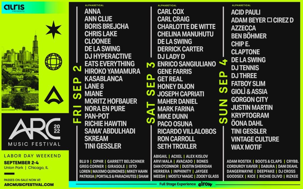 ARC will once again extend beyond the music, creating a cutting-edge experience that mirrors the culture and artistry of its host city. Attendees can expect curated production elements and art to guide them between each of the four immersive stage environments. The event will also act as a showcase of Chicago’s culinary prowess, offering an elevated and distinctly local event.