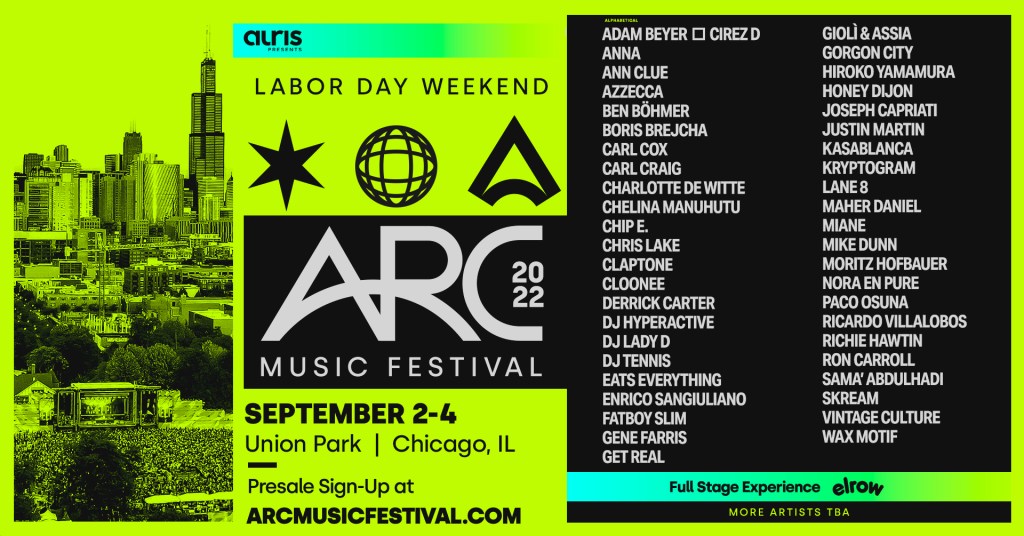 ARC will once again extend beyond the music, creating a cutting-edge experience that mirrors the culture and artistry of its host city. Attendees can expect curated production elements and art to guide them between each of the four immersive stage environments. The event will also act as a showcase of Chicago’s culinary prowess, offering an elevated and distinctly local event.