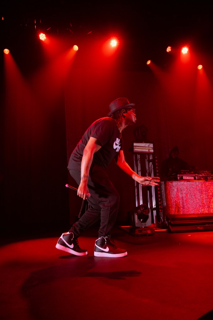 Keep in mind: all of this took place before the headliner came on stage. And when Danny Brown did take the stage, trenchcoat and alien-eye sunglasses on, with a massive pair of rain boots, the crowd was not let down. His 2023 solo album, Quaranta, is viewed as an artistic successor to his 2012 album, XXX, and though it is primarily about his desire to become sober and turn his life around, the energy at Brooklyn Bowl Nashville was not quite as dour as some have claimed the album is. When Danny Brown asks on the title track if he can “separate the life from the music,” it sounds like the initial doubts of an artist who is most known for drug raps and insane public presence wanting to change. As the set wound through different parts of Danny Brown’s career, it wasn’t hard to see the difference in his lyricism across those eras, yet it never felt like something was lacking or that the crowd expected him to not separate his life from his music. When the time came for a run of six tracks from his 2023 collab album with JPEGMAFIA (SCARING THE HOES), Danny Brown decided six tracks of high energy were not enough, following those up with three tracks from his incredible 2016 album, Atrocity Exhibition.