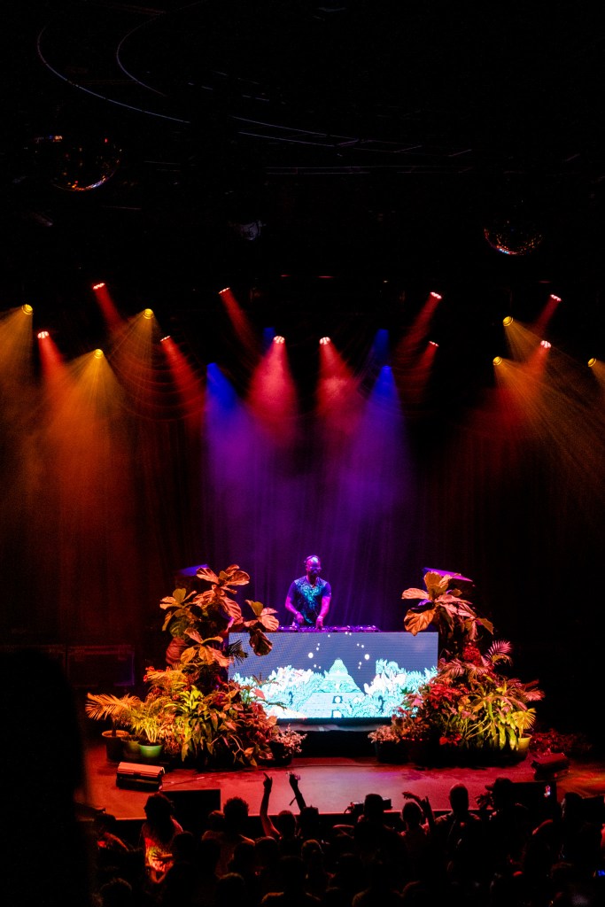 When Charlesthefirst took the stage, it went from zero to one hundred real quickly. His ambient and stylistic introductory bass sounds grumbled through the speakers, the Meru sound system magnifying the frequencies so intensely, I kid you not, I almost tapped out… before the actual music even began, mind you! When I tell you that the bass shook the earth beneath me, bringing me to my knees… When I tell you that the bass quite literally changed the pattern of my heart beat… When I tell you that the bass made it difficult to breathe… Whew! The sound system Deep Tropics utilizes never ceases to amaze me, and it was ideal for the type of experimental sonic experience an artist like Charlesthefirst curates best, although a bit overwhelming at moments. The earthly and nature-inspired sound samples Charlesthefirst uses in his music fed into the fantasy of being lost in the Deep Tropics well. Hip-hop clearly influencing his sound as well, plenty of deep bass drops ensued that left everybody not knowing what to do with themselves. The way he can go back and forth between dirty bass beats and ethereal soundscapes keeps Charles at the top of best sets for the weekend. His innovative approach to the hour he had with us proves his addition to the Deep Tropics catalog is perfectly fitting.