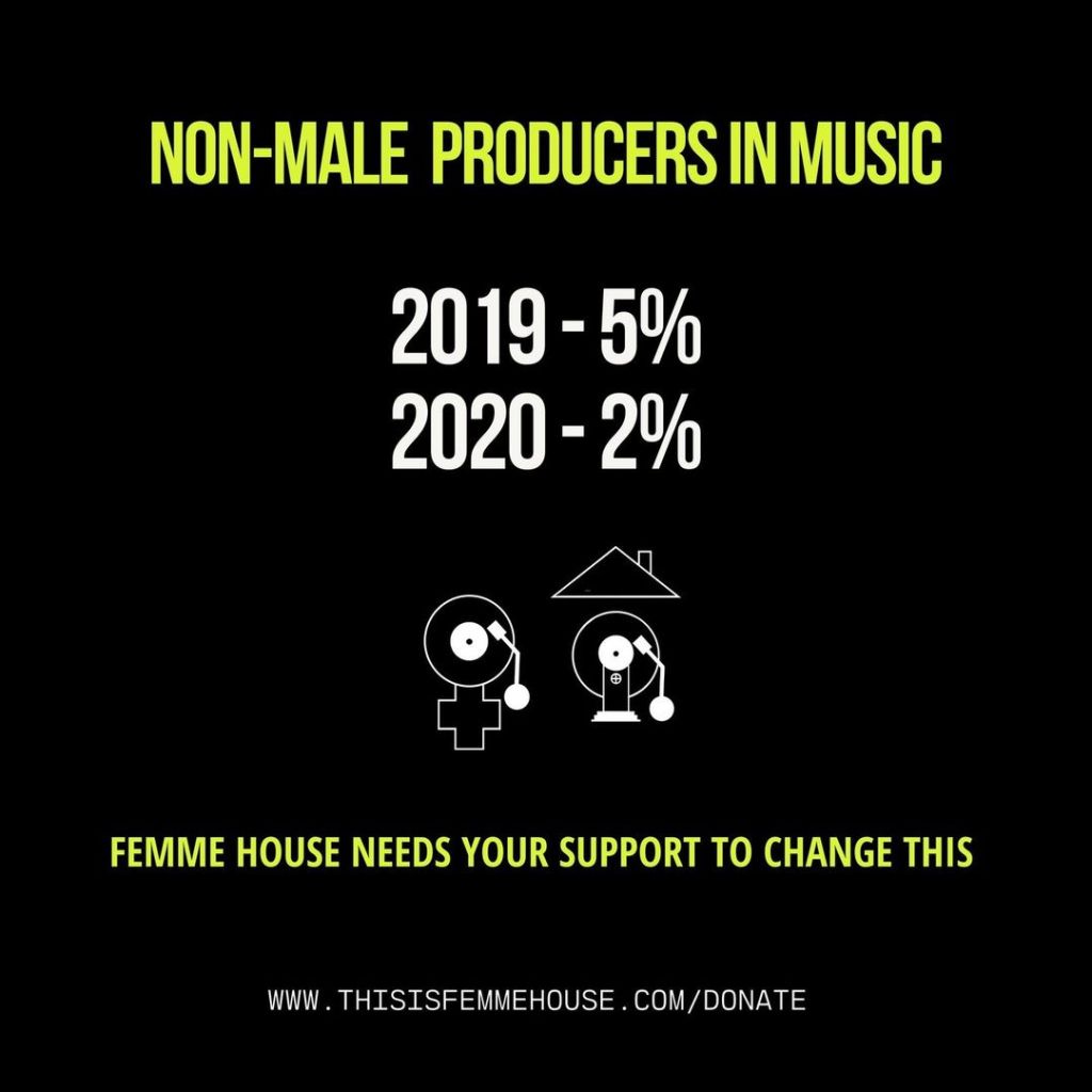 But the work is not done. Even with all of the programming and impact that FEMME HOUSE has accomplished in the past two years, that statistic of non-male producers has gone down to 2.5%. They are calling in support of resources to provide more courses, diversify more stages, teach more skills, and create hours and hours of music.