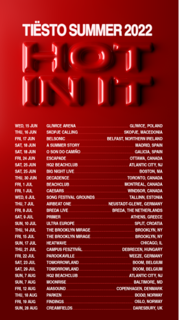 Check out Tiësto’s Tour dates below and purchase tickets here!