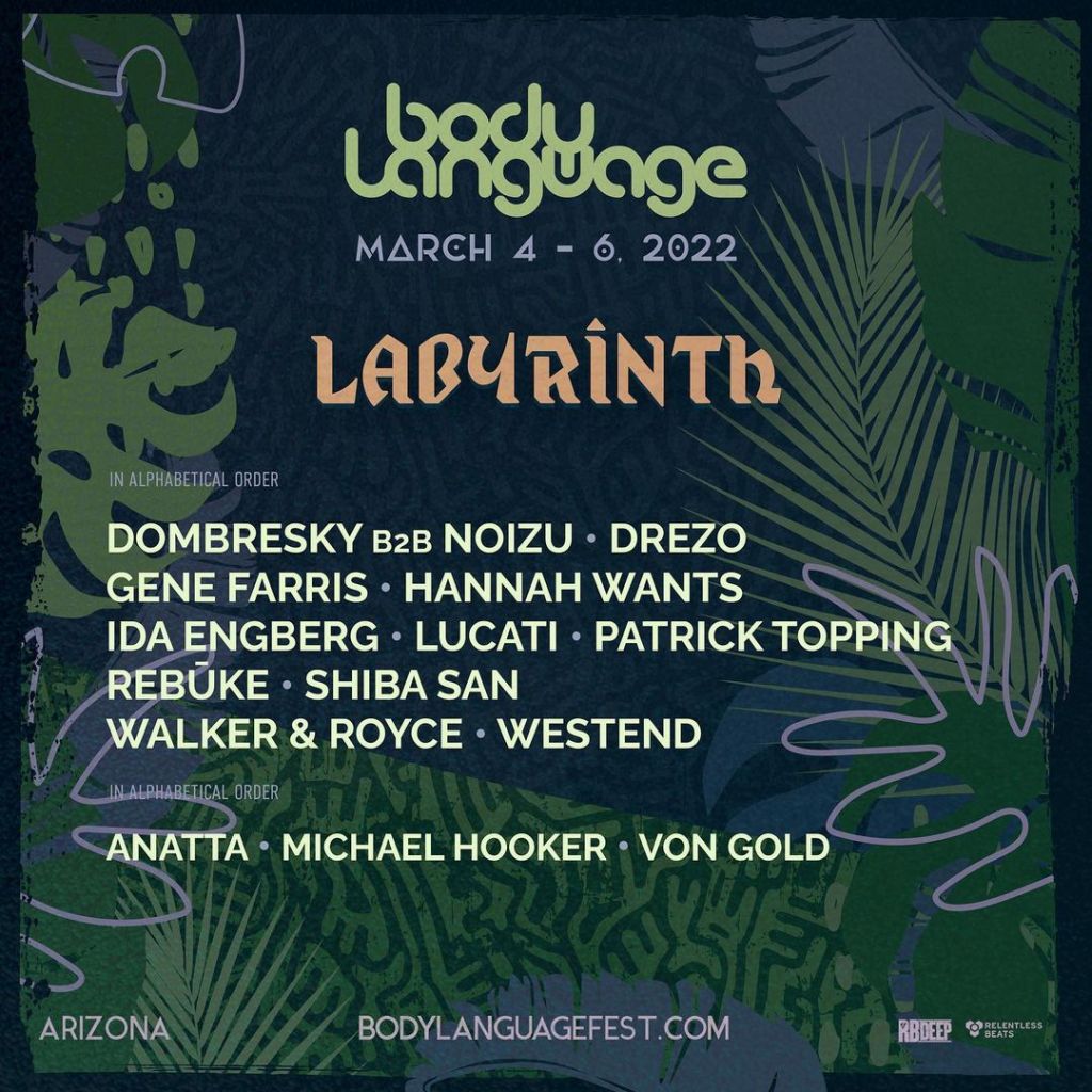 Body Language Festival starts in two weeks with an incredible all-star lineup of big names in the underground techno and house scene. Hosted by Relentless Beats and RBDeep, the brand-new three-day festival will kick off on Friday, March 4, at 2 PM. The festival will end at 10:30 PM on Friday and Saturday, then at 10 PM on Sunday, March 6. It will take place at the intersection of 5th Street and Maple Avenue in Tempe, AZ, with three unique stages to host the artists: Mirage, Labyrinth, and Abyss. Scroll down further to see my top 5 recommendations!