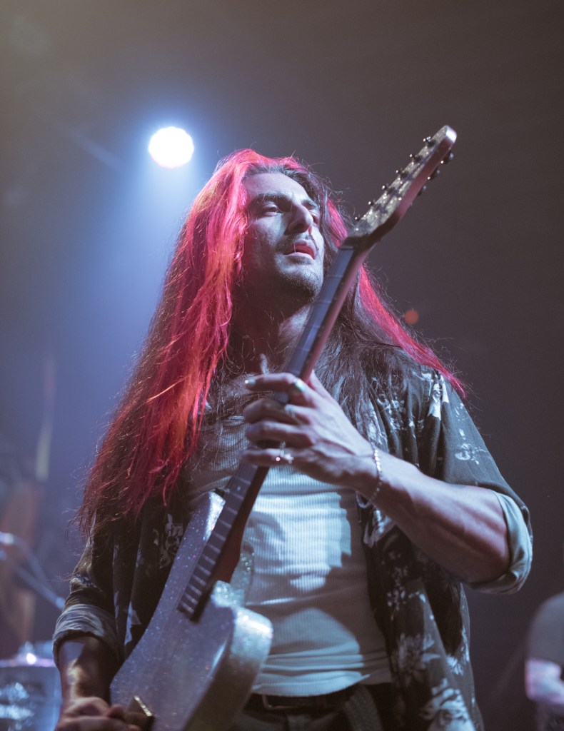 While most heavier rock bands shout “circle pit” as they perform, lead vocalist Joel Quartuccio took his own version of ramping up the energy by starting them himself. He leapt into the crowd without fear. He took his mic along and instigated a roar of the crowd, who screamed the lyrics with every fiber of their being. In that moment forward, everyone was a part of the performance, not just the band playing. Each band member continued to use the entire venue as their stage. They climbed on the bar, the staircase railing, and played to their heart’s content.