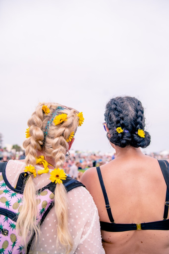 Fans of all ages made up the massive crowds of the weekend and with the variety of genres spread across the stages, the best names in pop, rock, rap, dance, and more cultivated the party energy of the weekend. And when I say all ages, I really do mean all ages – I saw babies being pushed in strollers and met a couple who had been married for 52 years and had been attending the festival since its inception. The energy of the weekend was more than abundant and complemented by the colorful clothing and unique hairstyles that ranged from flowers and glitter adorning braids to vibrantly dyed shades of the rainbow.