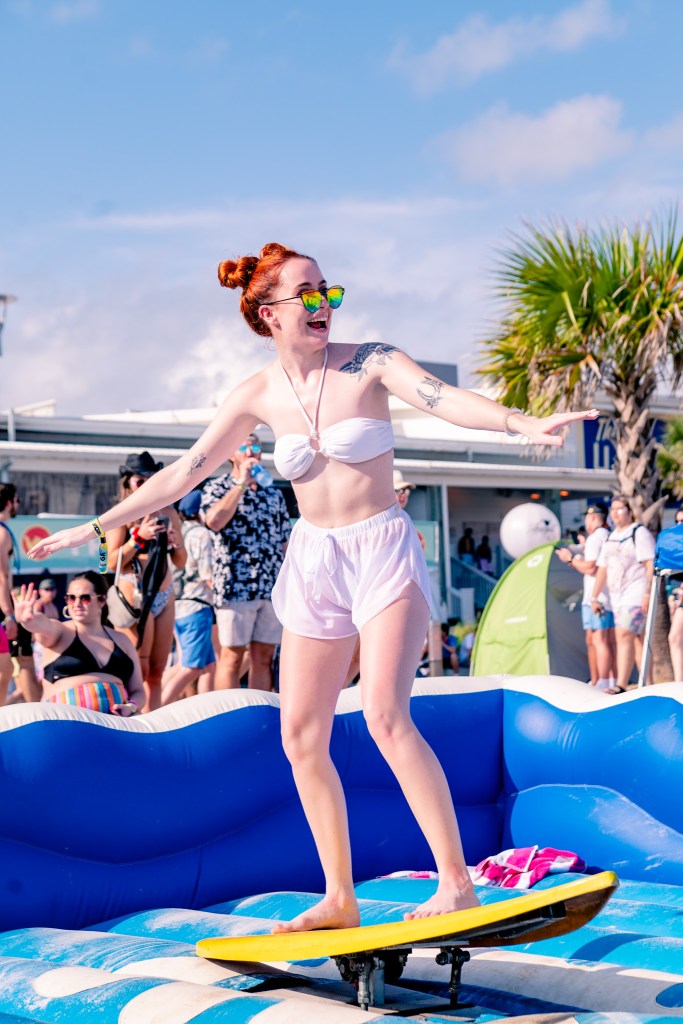 Even outside of the music, there were so many side attractions to keep people busy during the day as well – a ferris wheel was set in the background of the psychedelically decorated Hangout bus which was next to a roller rink that later turned into a dance floor, making for an Instagram worthy setting. There was a puppy kissing booth, which was certainly not to be missed, Broncos that would take you across the beach, and even slip-n-slides at Camp Hangout. Reminders flashed across screens between sets to stay hydrated and reapply sunscreen, and there was even a Neutrogena tent available for the latter that also gave festival goers a chance to test their surf skills in an enclosed setting.