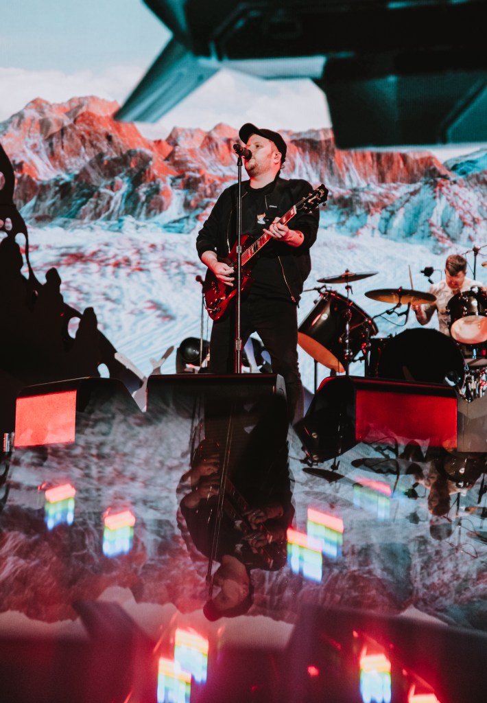 The crowd swelled with sound when Fall Out Boy hopped onstage. They lit the night like stars with the flashlights on their phones and swayed to the beat of the music. Fall Out Boy shared their words of gratitude in improv’ed song, which was met by loud cheer.