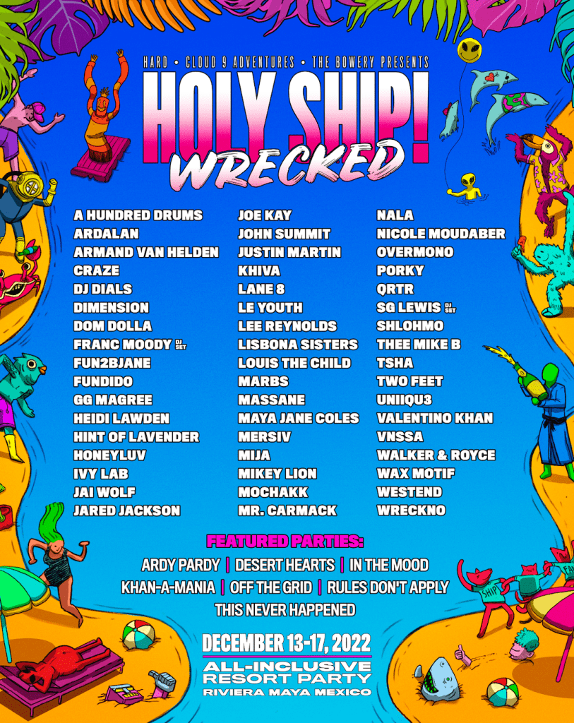 Holy Ship! remains one of the most coveted parties on the planet, an annual meeting ground for one of the scene’s most dedicated communities and a guiding force in the experiential dance music landscape. Over the past two editions, Holy Ship! Wrecked has brought the inimitable vibes of the oceanic festival excursion to land, redefining itself once again as the destination event to watch. Now the party returns for four nights of luxury accommodations, untouched music curation and immersive entertainment at Hard Rock Riviera Maya on the idyllic shores of Mexico’s Yucatan Peninsula, December 13-17.