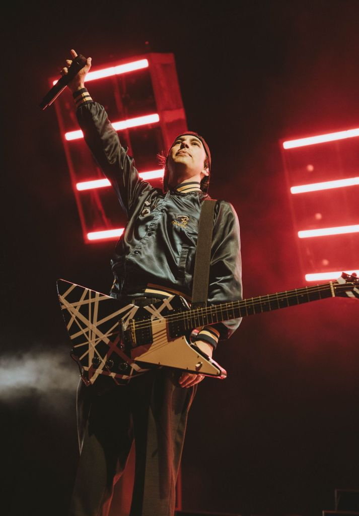 Vic Fuentes took to the stage, rocking a California t-shirt, opening their set with a song off of their newest album, “Death Of An Executioner”. Pierce The Veil captivated the audience instantly playing a relentless onslaught of tracks, new and old, like “Bulls in the Bronx,” and “Pass the Nirvana.” The setlist pulled from across their career, including emotive standouts like “Floral & Fading” and “She Makes Dirty Words Sound Pretty”. The band came out in acoustic guitars to perform “Wonderless,” before culminating in an encore of favorites, “Disasterology” and “Hold On Till May”. During the finals songs we noticed that people had brought out their flashlights out on their phones and placed colorful heart shaped pieces of paper against it to make a beautiful wave of colors swaying to the beat of each song. And to end the already iconic night, they performed theirs and Sleeping With Sirens hit song “King for a Day” which Kellin Quinn came out to join them on stage for.