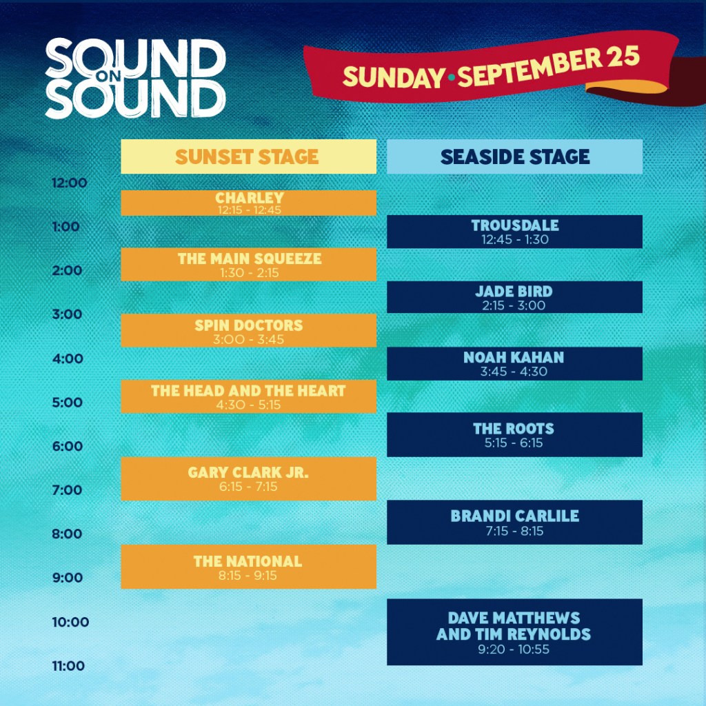 The full weekend performance schedule has been announced for the inaugural Sound On Sound Music Festival coming to Seaside Park in Bridgeport, CT next month. Saturday, September 24th will feature performances by The Lumineers, Stevie Nicks, Father John Misty, Ziggy Marley, and more. Sunday, September 25th will be headlined by Dave Matthews and Tim Reynolds, along with performances from Brandi Carlile, The National, The Roots, Gary Clark Jr., The Head and the Heart, and more. With no overlapping set times across 2 stages, festival goers will be able to see every performance. See the full schedule here.