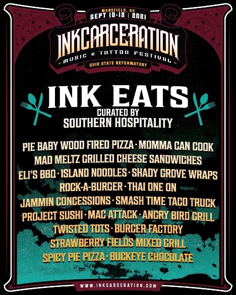 Festival producers Danny Wimmer Presents have announced additional onsite entertainment and unique food offerings for the sold out Inkcarceration Music & Tattoo Festival, which returns for its third year September 10, 11 & 12 on the historic grounds of The Ohio State Reformatory in Mansfield, Ohio (made famous by the movie The Shawshank Redemption).