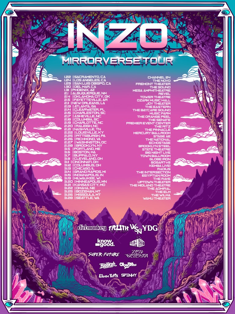 Denver-based electronic innovator INZO has officially unveiled his highly anticipated Mirrorverse Tour, a 38-date North American headline run launching January 22, 2026 in Sacramento, CA. The tour will bring INZO’s visionary sonic world to life in cities including Los Angeles, Brooklyn, Seattle, Chicago, Washington, D.C., and more, before wrapping up in March 2026.