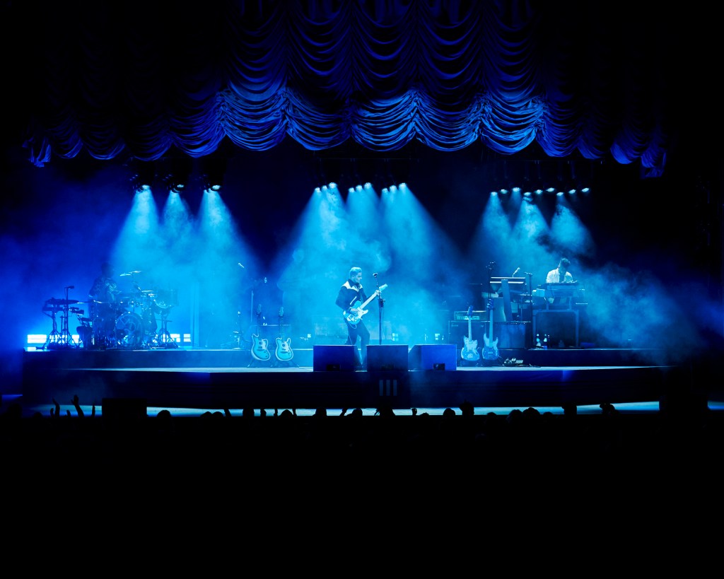 The show began with his MC/DJ of the tour playing some tunes, going on to announce Jack White’s performance was beginning. His MC/DJ stand resembled a preacher’s booth- which only meant one thing, Jack White was ready to take us to church. Suddenly, a massive dark-blue curtain raising, to reveal Jack on stage with a 3 piece accompanying band. I was pretty surprised to see this as every time I have seen him live, he usually has at least 5 performers with him on stage. Nonetheless, the band performed flawlessly. Jack’s ability with any instrument he touches demonstrates his mastered talents. White is well known for performing without a setlist, which requires extensive rehearsal and preparation from his supporting talent. That fact alone always blows me away to watch him and his team perform top tier shows, all following his lead. For this tour, he is supported by Daru Jones on drums, Dominic John Davis on bass, and Quincy McCrary on keys.