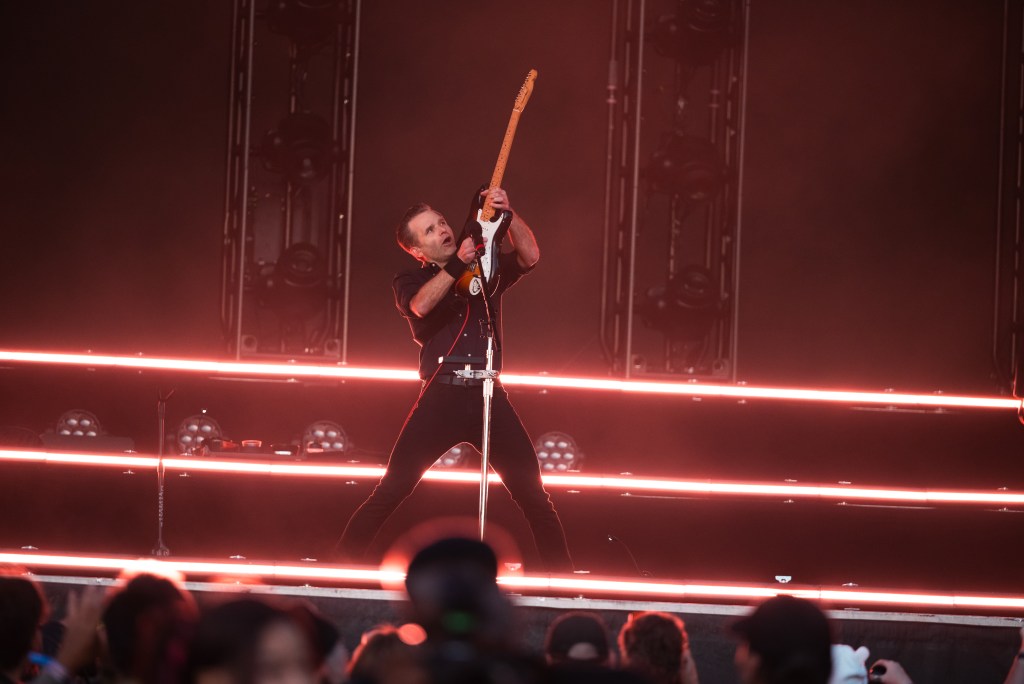 As Death Cab for Cutie wrapped up their performance, Ben Gibbard reminded the crowd, “But wait, there’s more! We’ll be right back. Give us fifteen minutes, we’re playing Give Up.” We took those fifteen minutes, rested in the VIP lounge while listening to a phenomenal house set from a presumed local DJ, and then got back out right as The Postal Service took the stage. Ben Gibbard, Jenny Lewis, and Jimmy Tamborello were joined on stage by Dave Depper to perform their lone album, Give Up. Released in February of 2003, Give Up has become a seminal work of indietronica, yet Gibbard and Tamborello never felt inclined to make a follow-up. During the tenth anniversary tour, Gibbard announced officially that the group would be disbanding after their Lollapalooza aftershow on August 5th, 2013. We’re glad they reformed for this twentieth-anniversary tour, though, because hearing these songs live changes lives. Songs like “The District Sleeps Alone Tonight,” “Such Great Heights,” and “This Place Is A Prison” become even more powerful in a live setting, particularly when Gibbard hops on drums while singing the latter of those three. The beach balls were finally out and getting bounced around, the crowd was dancing, and unlike most reunion/anniversary shows, the band genuinely seemed to enjoy being together. A great end to a somewhat strange day.