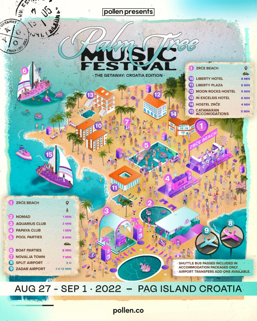 Palm Tree Music Festival: Croatia Edition will include pool parties, open-air venue takeovers, a huge international lineup, a variety of accommodation packages that include hotels and catamarans, and exclusive cultural Add On experiences.