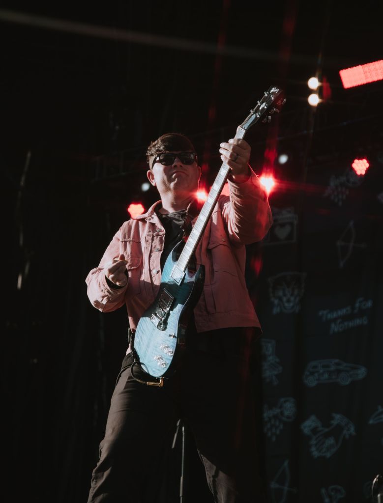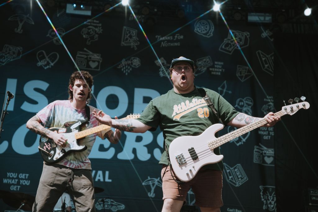 Mom Jeans. mostly played stuff from their newest album, “Sweet Tooth”, with hits like “Death Cup” and “What’s Up?”. The bassist, Sam Kless, put on a fun display for the crowd and photographers, strumming his bass dramatically and raising his arms into the air to get the crowd to clap to the beat. Inbetween songs, the lead singer asked if they could play us a song they have never been played in front of a crowd before that was named after their local county fair.