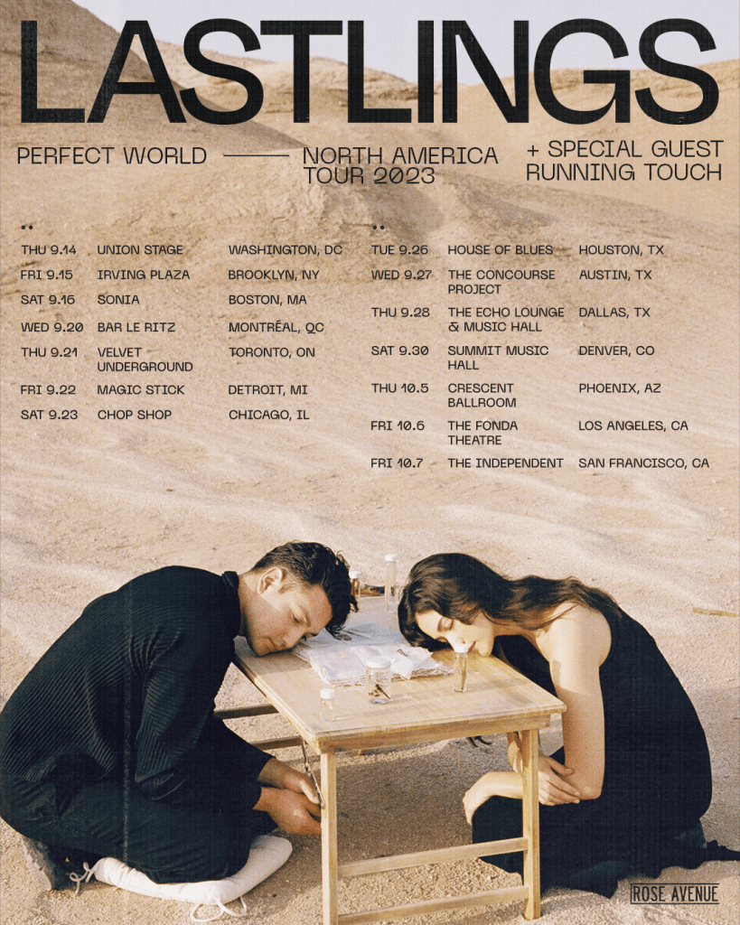 This fall, Lastlings will return to North America, bringing their stunning three piece live setup to stages across the US and Canada for their Perfect World Tour. Kicking off on September 14th in Washington, DC, Lastlings’ upcoming tour will see them headline iconic venues like New York’s Irving Plaza and Los Angeles’ Fonda Theatre. The 14-date tour will feature Amy performing live vocals with Josh on keys and guitar, and an additional drummer.
