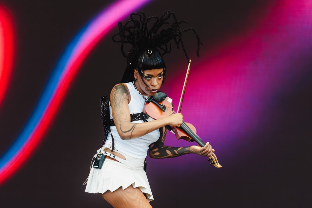 We started our day down at the T-Mobile Stage with Sudan Archives. Brittney Parks is truly one-of-one, blending traditional instrumentation with modern production in a way that no one has done at her level before. The Cincinnati-born violinist, singer, and songwriter took the stage around 2:45, the afternoon sun bearing down on the GA section of the crowd. Her set mostly consisted of tracks from her exceptional 2022 album, Natural Brown Prom Queen, but there was also a traditional Irish jig played between “NBPQ (Topless)” and “ChevyS10” as an homage to her reason for playing the violin: “I love Irish music.” Sometimes, it really is that simple. At the end of her set, she brought out her Chicago family to revel in this moment, and she absolutely deserves it. There were some sound issues, but she didn’t let them affect her performance in any way. Unlike a certain performer (who will remain nameless) at Lollapalooza 2011, she soldiered on, trusting her crew to fix it and knowing that this was her moment despite any technical issues. Truly incredible.