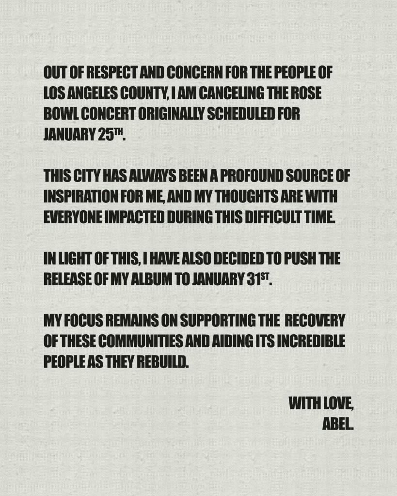 Iconic entertainer The Weeknd or Abel Tesfaye shared his support for L.A. by donating a total of $1 million to the LA Regional Food Bank, the LAFD Foundation, and GoFundMe’s Wildfire Relief Fund, in partnership with his XO Humanitarian Fund and World Food Program USA. Given the gravity of the situation, he also decided to cancel his album release concert which was to be held at the Pasadena Rose Bowl on January 25th.