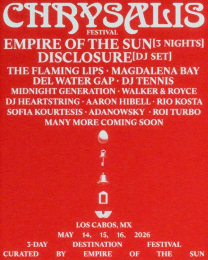 Empire of the Sun step into the destination festival category with Chrysalis, set for May 14–16, 2026 in Baja California.
