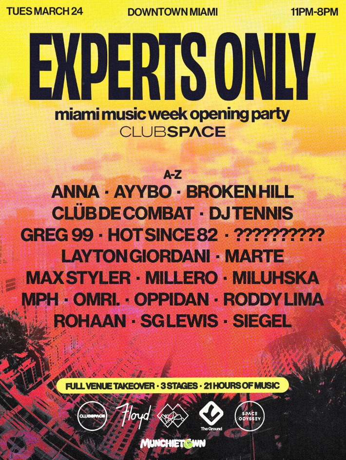 The lineup stretches across techno, house, indie dance, and UKG, featuring DJ Tennis, Hot Since 82, Layton Giordani, SG Lewis, Max Styler, MPH, Omri., Oppidan, Roddy Lima, Ayybo, Anna, and more. With a 21 hour marathon on deck, this opening party sets the tone for the entire week. For full lineup details and ticket information, visit clubspace.com.