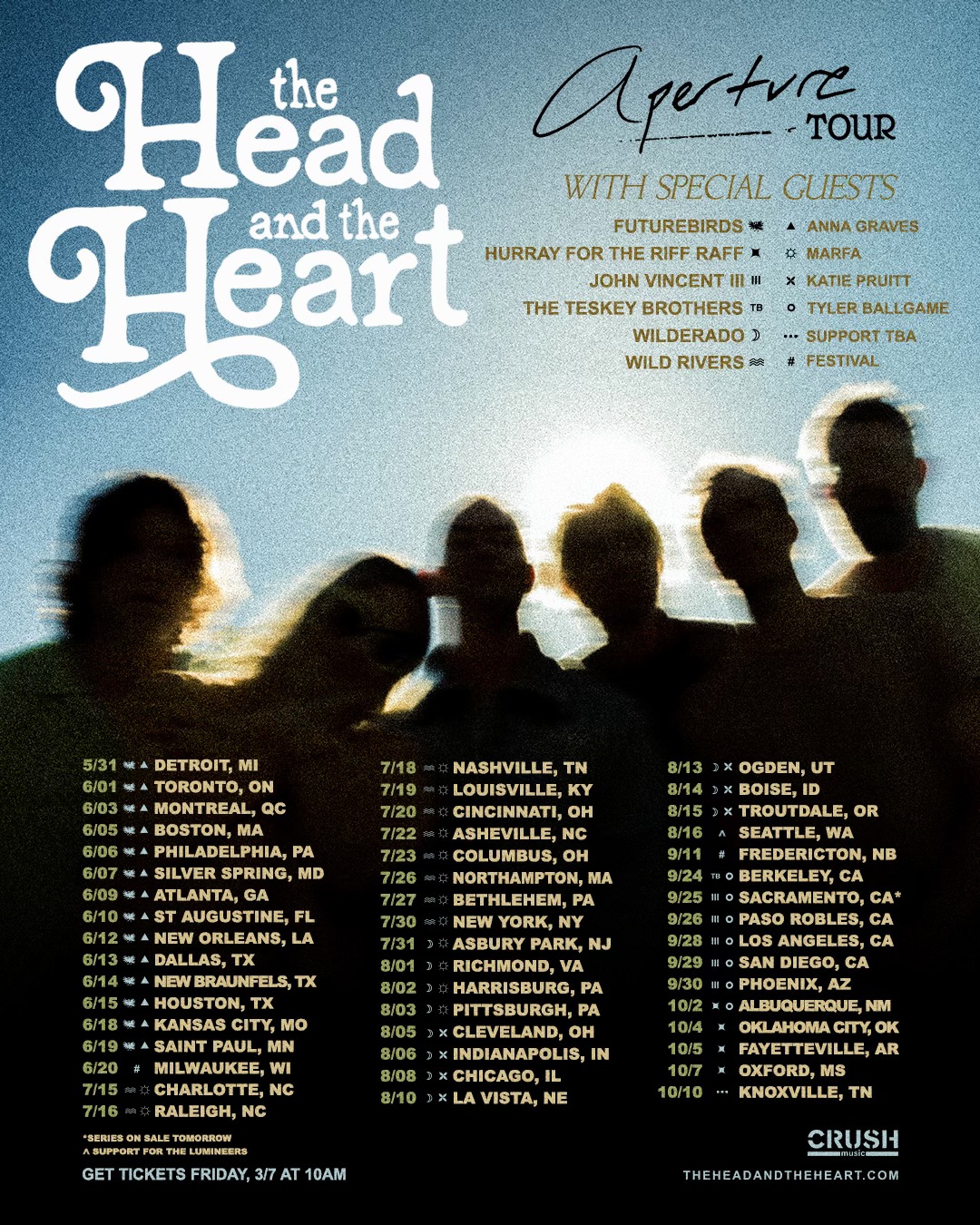 The Head and The Heart plans to pump life into fans with their Aperture tour. Excitingly, the tour follows the release of the studio album with the same name, Aperture. The full album will release May 9, however they have teased a few songs, one of them including, “After the Setting Sun.” The Aperture tour kicks off May 31 in Detroit, Michigan, and ends October 10 in Knoxville, Tennessee. $1 from each ticket goes to their Rivers and Roads Foundation, supporting music education and mental health. So, if you’d like to support the cause alongside getting an awesome show, then don’t be afraid to grab those tickets now!