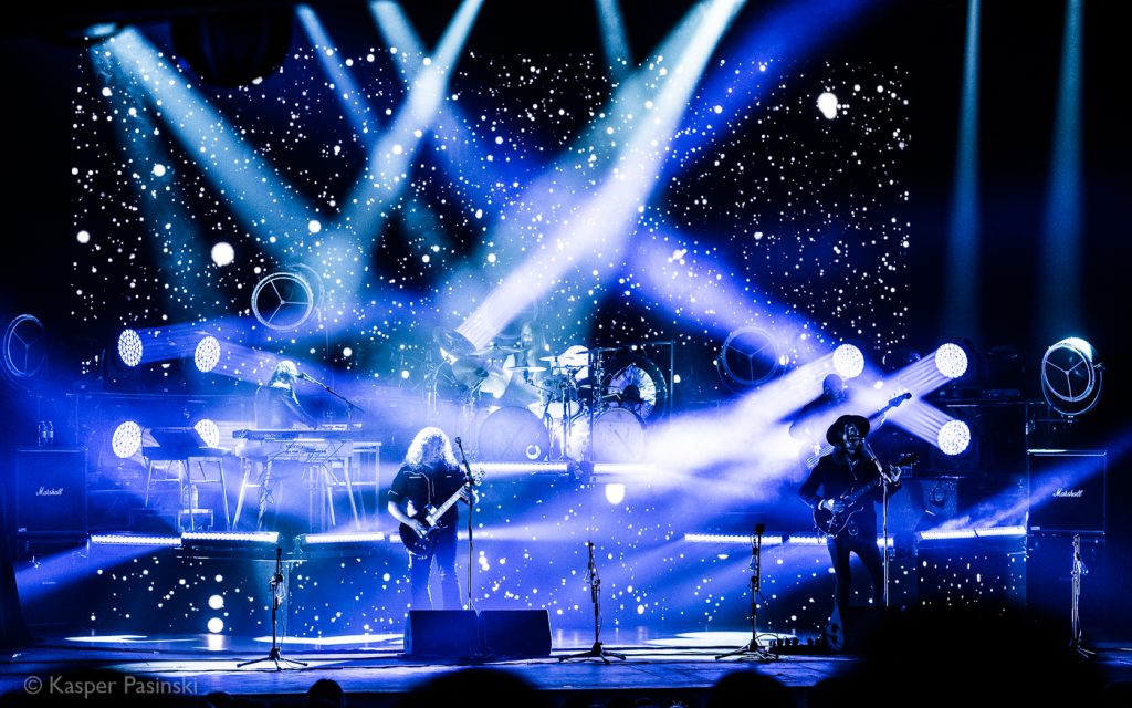 The main show started with a small delay. I was waiting in the back of the venue with other photographers when light technician passed me with a grin on his face and after looking at the camera in my hand said ‘you are going to hate me tonight’. We knew that light will be at least challenging for photographers, but a more important part was about to come up from the speakers. The venue went all black and this was the signal that the show is about to begin – the screens on the back started to project a picture of stars (which was a scenery for most of the evening) which slowly started to change into video graphics showing streets of Stockholm when the band started to enter the stage accompanied by ‘Livets Trädgård’ – an intro to their last record played from the tape.