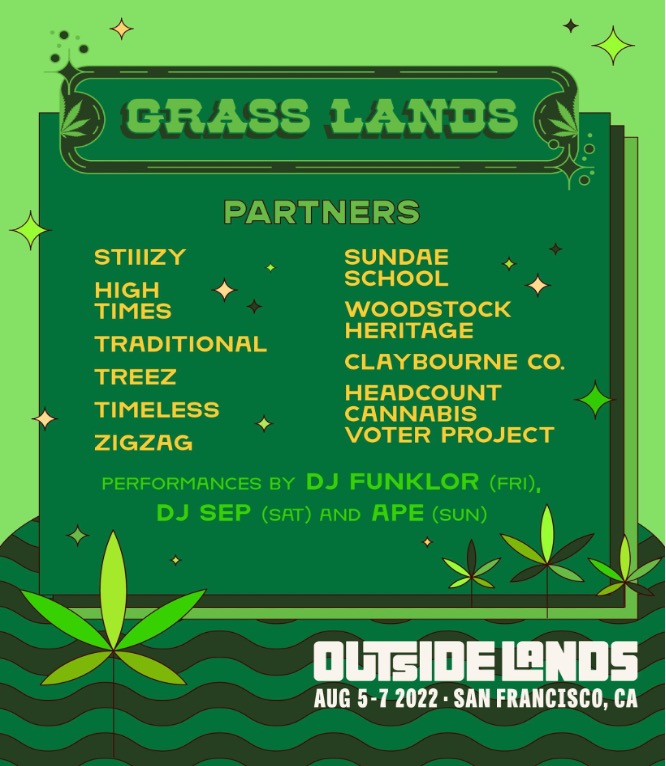 You can visit the Grass Lands page for more details on participating partners and exclusive offerings. You will also be able to pre-order cannabis products ahead of time in the Outside Lands app and they’ll be ready to pick up in Grass Lands at The Farmers’ Market by High Times. Also, be sure to follow Grass Lands on Instagram for a closer look at the 2022 experience.  You can also find more information about Outside Lands ticket purchasing here