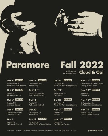 For more information and to purchase tickets through Live Nation, click here or visit Paramore’s website. You can also find the official fall 2022 tour dates below!