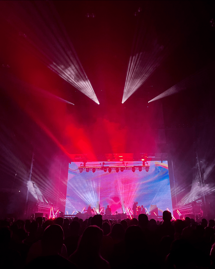After a quick set change, alt-J appeared on an elevated stage within a transparent box covered in colorful, moving graphics. From a candlelit stage, to a field of cherry blossoms, to an overlay of Joe Newman, the lead singer, the visuals were top-tier and matched the vibe of every song perfectly. The set included songs from all three of their albums, and plenty of deep cuts for the extremely loyal alt-J crowd in attendance. alt-J controlled and fluctuated the vibe at their will, taking the crowd on a journey through their discography. The angelic vocals and guitar, mellow synths, and flawless drums brought alt-J studio cuts to another level that must be seen live. During a break in the set, alt-J used their 3D graphics to encompass the stage in a massive graphic of the Ukrainian flag in a heartfelt, meaningful show of support to Ukraine. The set finished off with their biggest hits, and every person in attendance was dancing. After thanking the crowd, they left the stage with “Never Gonna Give You Up” by Rick Astley and the party kept going despite the house lights turning on.