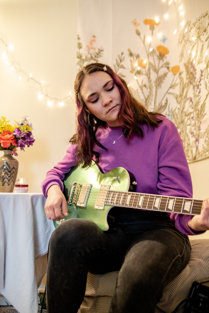Classically trained vocalist Anika Emily has taken her passion for vocals and harmonies to embark on a new journey of recording her first EP. While dropping her original dreams of being a choir teacher, Anika has channeled her passion for music and lyricism into forming her unique voice to fit the vibe of an indie-pop project. She expressed the trials and tribulations of finding her “voice,” while also showing herself grace, acknowledging that her voice will always be changing so it’s better to adapt with it, rather than resist it. I’ve had to “re-imagine literally every single that that I’ve ever sung to fit a new vocal tone,” she says. Personally I can hear the Midwestern indie-rock sad-girl influence on her voice and lyrics, so much that I’m deeming her the female Patrick Stump of our generation.