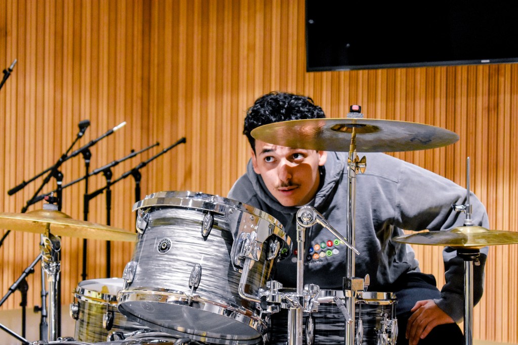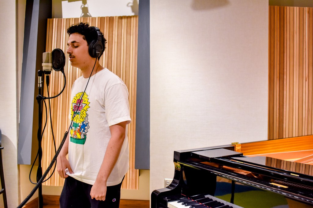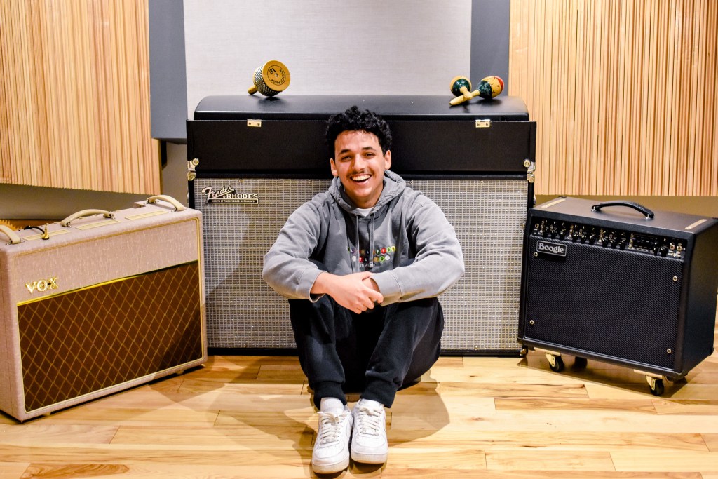 Upon arriving in Philly for the next installment of Quarantine Tapes, we met up with Petty Bravo first at a recording studio for the students at Drexel University to use. The facilities were so nice and cozy, perfect for an intimate setting such as Quarantine Tapes. Petty Bravo and his lovely manager Charlotte greeted us with smiles and big energy for the day. The studio they pulled us into had all the instruments and props we could possibly need for a creative photo shoot and vibey performance set.