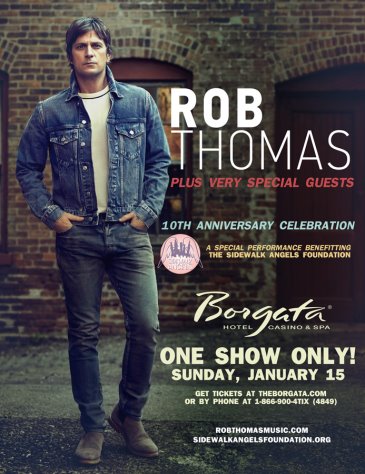 Known as the lead singer of Matchbox Twenty, Rob Thomas returns to the Borgata Hotel, Casino & Spa for a one-night only performance to celebrate the Sidewalk Angels Foundation’s 10th anniversary.