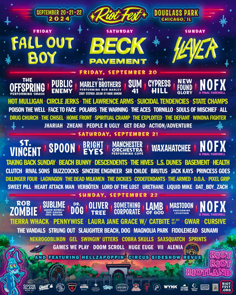Riot Fest has always been known for its killer lineups, and this year is no exception. Fall Out Boy, Slayer, Beck, and Pavement will be headlining this stellar event. But the fun doesn’t stop there. Acts like Rob Zombie, The Offspring, Sum 41, and Cypress Hill will be joining on stage to make this year one to remember. The diversity of genres, from hardcore punk to alternative rock, ensures there’s something for everyone.
