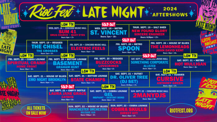 Aside from the main events, Riot Fest is host to many events to keep the party going after hours. Throughout Chicago, there are aftershows that you won’t want to miss out on. It’s worth noting that these tickets are separate from Riot Fest festival tickets but totally worth it!