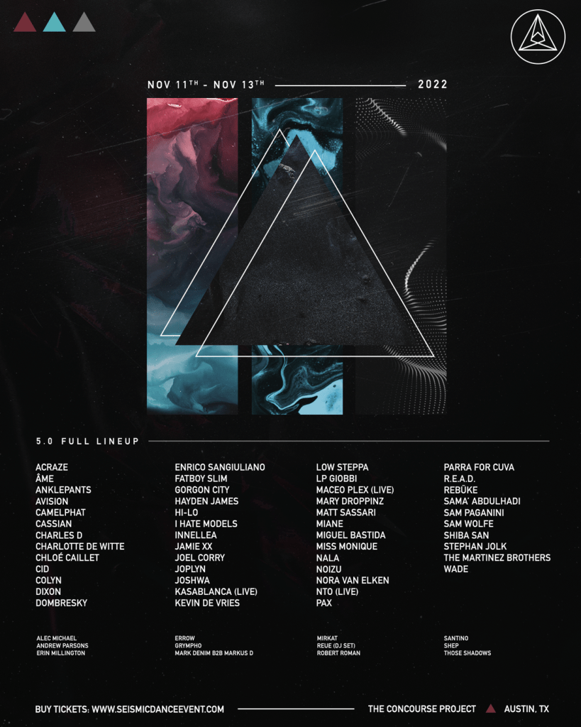 Seismic Dance Event Announces Complete Artist Lineup for 5th Anniversary, Returning to The Concourse Project on November 11-13, 2022