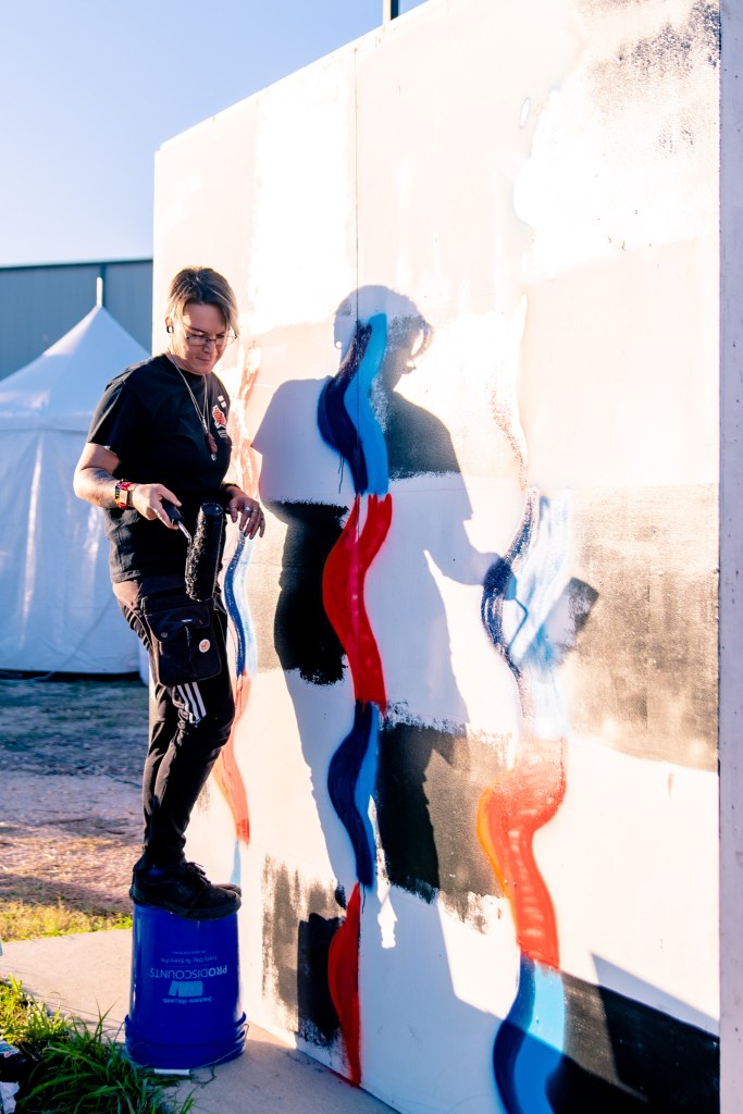 Seismic Dance Event 4.0 kicked off with an absolute banger of a day yesterday! The sun was still shining brightly when the gates opened, allowing the early comers to trickle in and take in the unique stages as well as the art displays ranging from hanging circular chairs to live-painted murals. The stream of entering attendees was fairly constant as the sounds of HoneyLuv, KIVI, and Colton Cameron filled the space. Each stage was given an associated color scheme, making it easy to remember who was playing where – yellow for the Frequency Stage, which also had wooden cut-outs to match frequency waves, blue for the Tsunami Stage, and red for the Volcano Stage, which was the indoor stage that transported attendees into a warehouse rave environment upon entry. There’s no doubt about it – the festival organizers pay a lot of attention to detail.