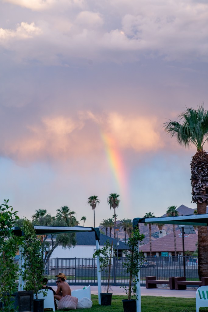 Sunday was a big day of conflicts for me and even though I had a game plan going into the day, I ended up scrapping most of it in the name of just letting myself enjoy the music and my surroundings rather than worrying about going back and forth between the venues. The clouds were very present during the first few hours, which provided some relief from the sun as I caught the tail end of Miss Dre and the beginning of Jaden Thompson at Renaissance. It began to rain shortly after I got to Saguaro during Tini Gessler’s set and even though I originally intended to stay for DJ Minx, I decided to hop on a shuttle after the sprinkles – and I’m glad I did because the shuttle line was already getting long – to catch some of Lucati at Margaritaville. The sun and heat returned by the time I got there so the pool was somehow even more packed than it was the day before. Disco Lines was a must-see artist for me, so I found myself back at Renaissance just in time for a rainbow to give way to a brilliant sunset that kicked off an amazing Vintage Culture set. While I am very sad that I wasn’t able to split the closing set times between the three hotels – LP Giobbi and Wax Motif both would have also been excellent choices and it would have been nice to see the nighttime production on the other two stages – I’m so glad I got to hear Vintage Culture drop “Gimme! Gimme! Gimme!” by ABBA in such an electrifying crowd.