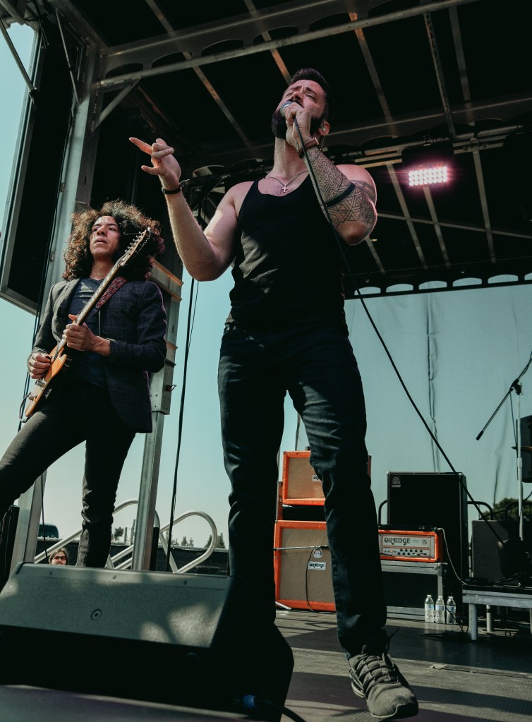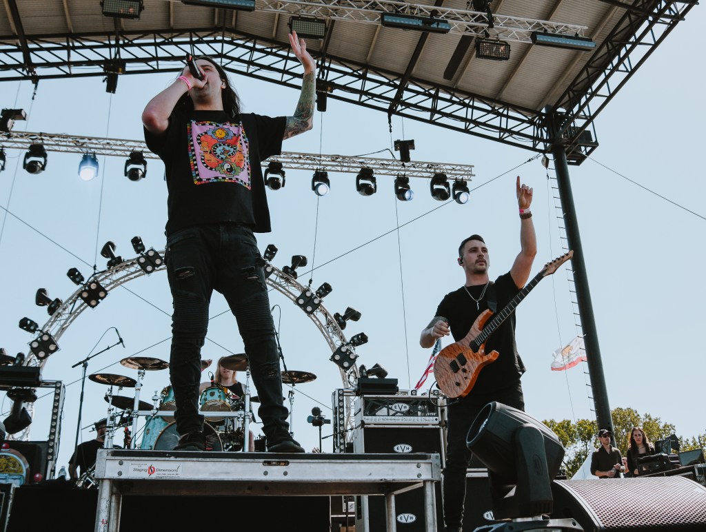 Chico-based post-hardcore band, Hail the Sun, were a crowd favorite as the growing audience was lured in upon hearing their sound begin. Lead vocalist,  Donovan Melero, thrust his mic stand into the air, threw it wildly around the stage, before leaning in close and reaching for the members of the crowd. He interacted with a meaningful gaze to every person he could meet eyes with as instrumentals and drums pounded.