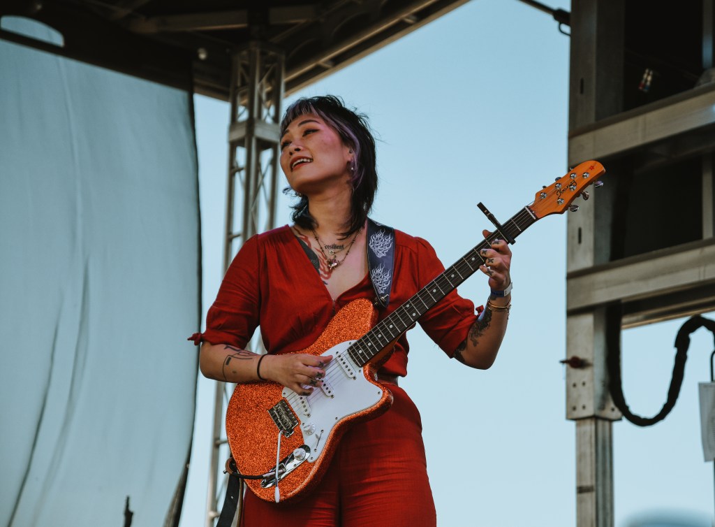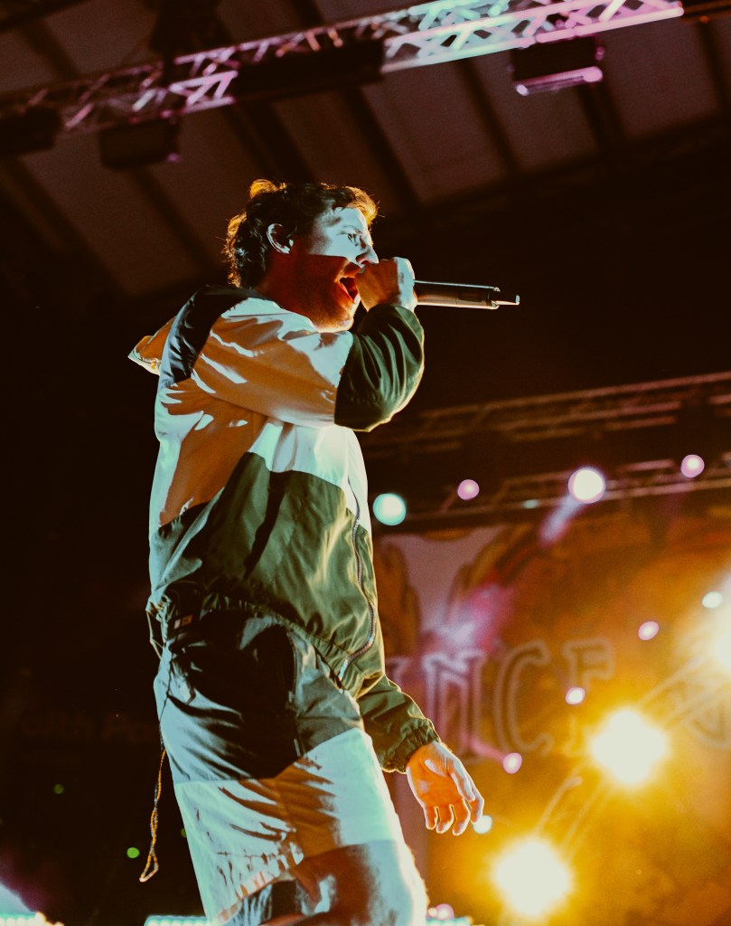 Movements then joined the stage, and their banner hung proud to showcase a bonsai tree and setting sun as they wrought emotions from within. Storytelling lyrics took the main stage as gentle pop punk contrasted a gentle energy, compared to that of the performances earlier in the day. As their concepts in their work arise relatable feelings and explore loss, love, concepts of mental health, they shone a light of clarity and catharsis throughout their performance.