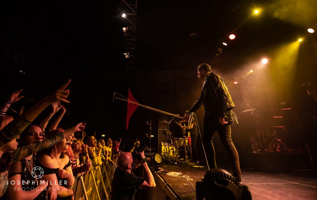 Enter the fray, Dominic Harrison AKA, Yungblud. Making a few waves currently across the pond in the states right now due to his collaborations with artists including, Dan Reynolds (Imagine Dragons) and Halsey, he struts onto the stage in a mist of smoke and the sight of his silhouette is welcomed with huge cheers and screams from the sold out venue.